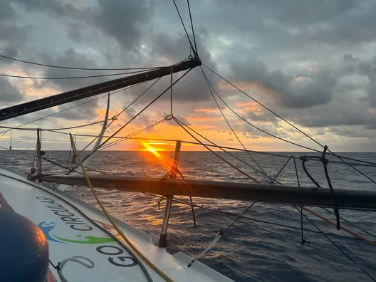 "I wanted to keep things simple. I didn’t feel comfortable with the idea of passing inside the Cape Finisterre TSS with coastal traffic, fishermen, weaving between cargo ships before and after the TSS, likely with a lot of wind and waves, while having to gybe. So I chose a simpler route, even if it meant losing some time, to better utilize the boat’s potential. Unfortunately, I had a small rudder issue just as I was passing Cape Finisterre last night: the tiller arm came loose, and I had to stop the boat for a bit of repairs. I lost some time, but these things happen."